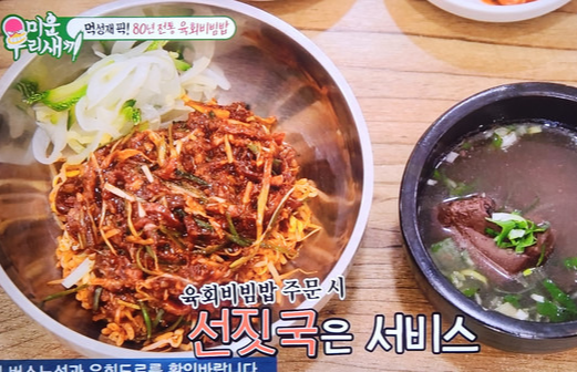 육회비빔밥을 주문하면 선지국이 서비스~ 라고 합니다.