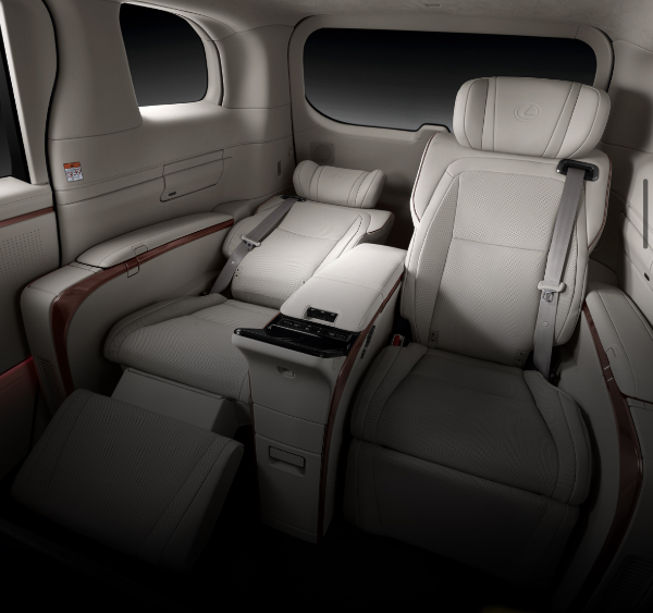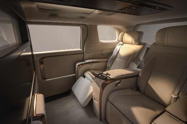 LM500h의 핵심은 2열 VIP 시트다. 모션 캡쳐 기술을 기반으로 개발된 이 시트는 세계 최초로 신체 부위별 공조 기능을 탑재해 탑승객의 체온을 감지하고 맞춤형 공조를 제공한다. 4인승 로열 그레이드에는 48인치 와이드 디스플레이가 탑재된 파티션을 갖춰 프라이버시 보호와 함께 효율적인 업무 환경을 제공한다.