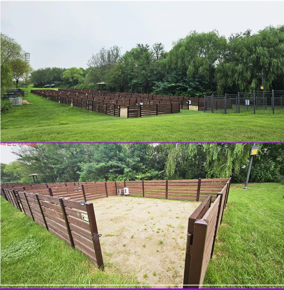1)단독형 캠핑 사이트는 반려견을 안전하게 풀어두고 주변 사이트 반려견과의 마찰도 최소화할 수 있도록 나무울타리가 설치된다.