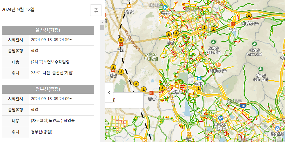 추석 연휴가 시작되면서 주요 도로의 교통 혼잡이 예상됩니다. 출발 전에 국토교통부에서 운영하는 교통정보센터를 통해 실시간 고속도로 상황을 확인하세요.