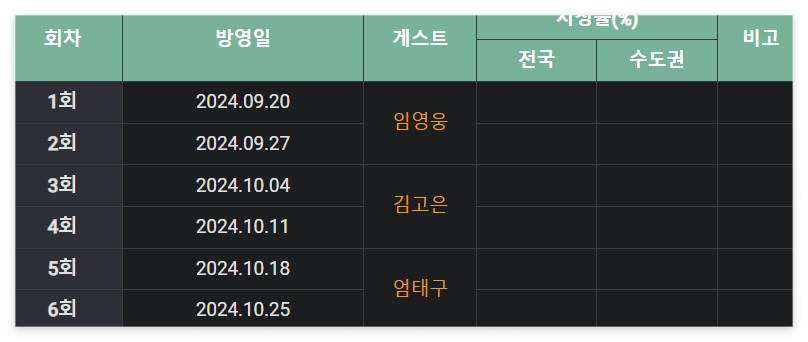 첫 방송은 2024년 9월 20일 금요일 저녁 8시 40분에 tvN에서 방영됩니다.