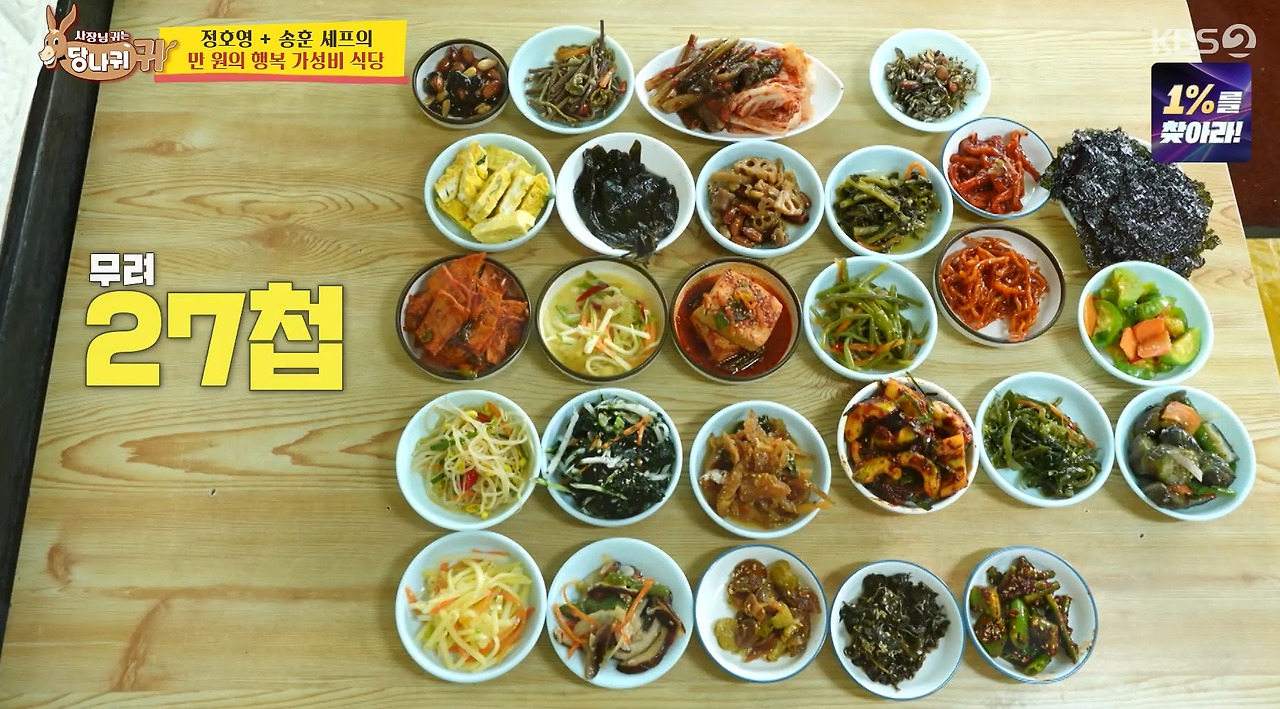 특이사항 : 찌개 주문시 27첩 반찬(나물, 장아찌, 김치, 계란말이 등)