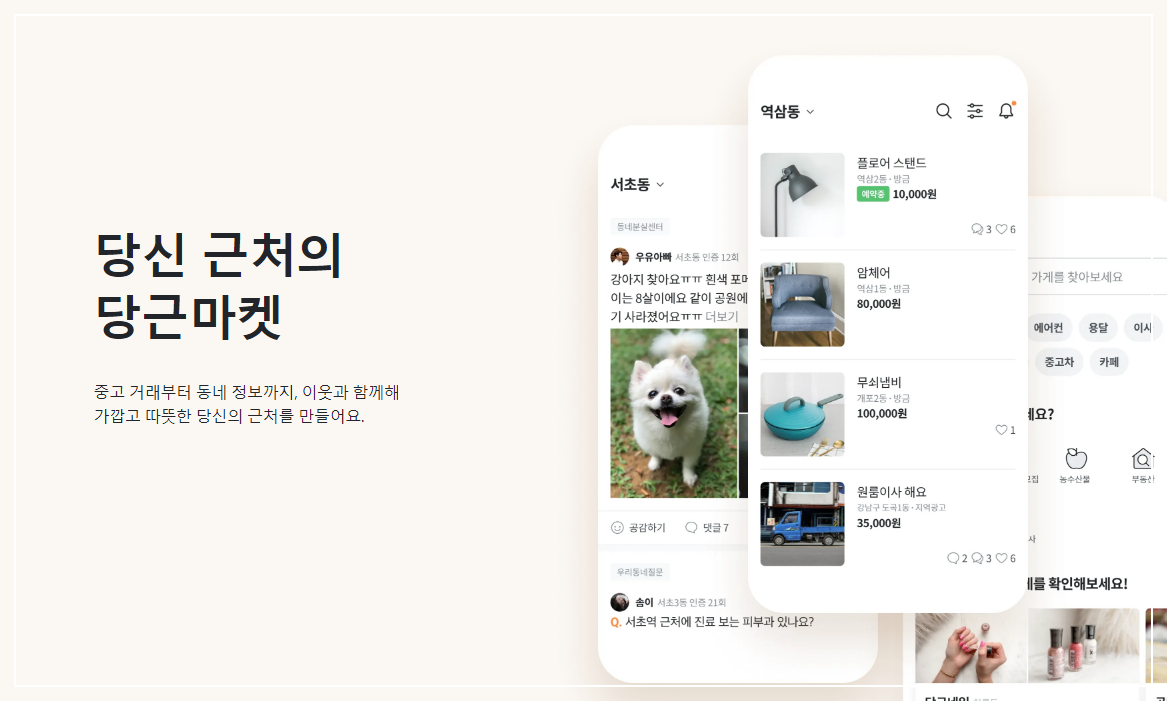 당근마켓은 지역 기반 중고 거래 플랫폼으로, 사람들이 불필요한 물건을 사고 팔거나 서로의 소식을 나누는 공간이에요. 그뿐만 아니라, 다양한 지역의 소식과 정보를 공유하며, 이웃과의 소통을 활성화하는 역할을 하고 있습니다. 당근마켓은 특히, 중고물품 거래 외에도 동네 가게 소개, 알바 정보, 부동산 정보까지 제공하여 많은 사용자들에게 사랑받고 있어요.