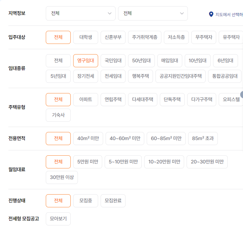 공공주택 찾기에서 영구임대 선택