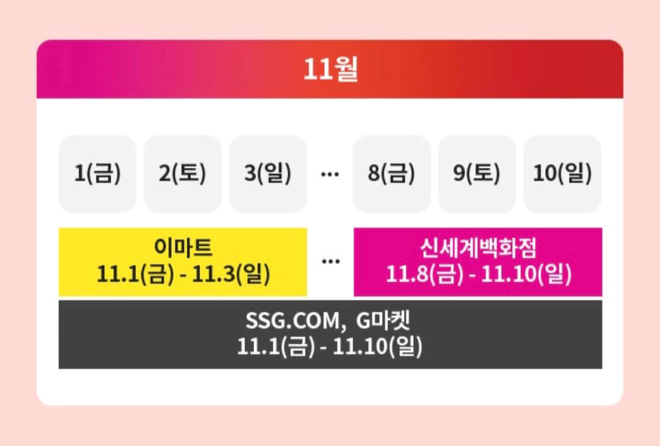 다양한 상품들이 평소보다 할인을 하므로 잘 확인하셔서 득템하시길 바랍니다