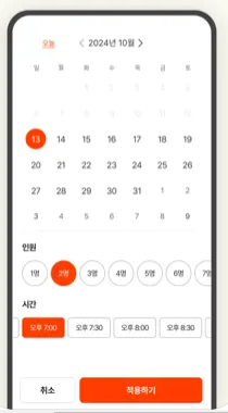 2.날짜,예약가능 시간, 인원 확인