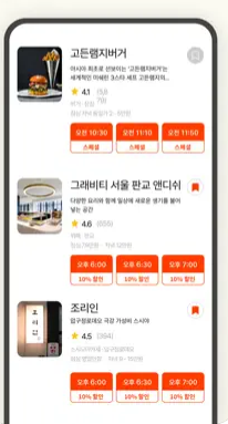 메인 화면에서 원하는 레스토랑 검색합니다.