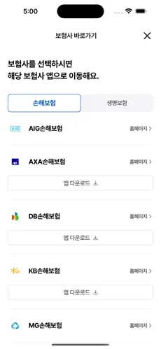 보험 계약 조회를 위해 필요한 정보를 입력해주세요. 그러면 고객님의 보험사 목록이 조회됩니다. 이 중에서 실손 청구를 희망하는 보험사를 선택하세요.