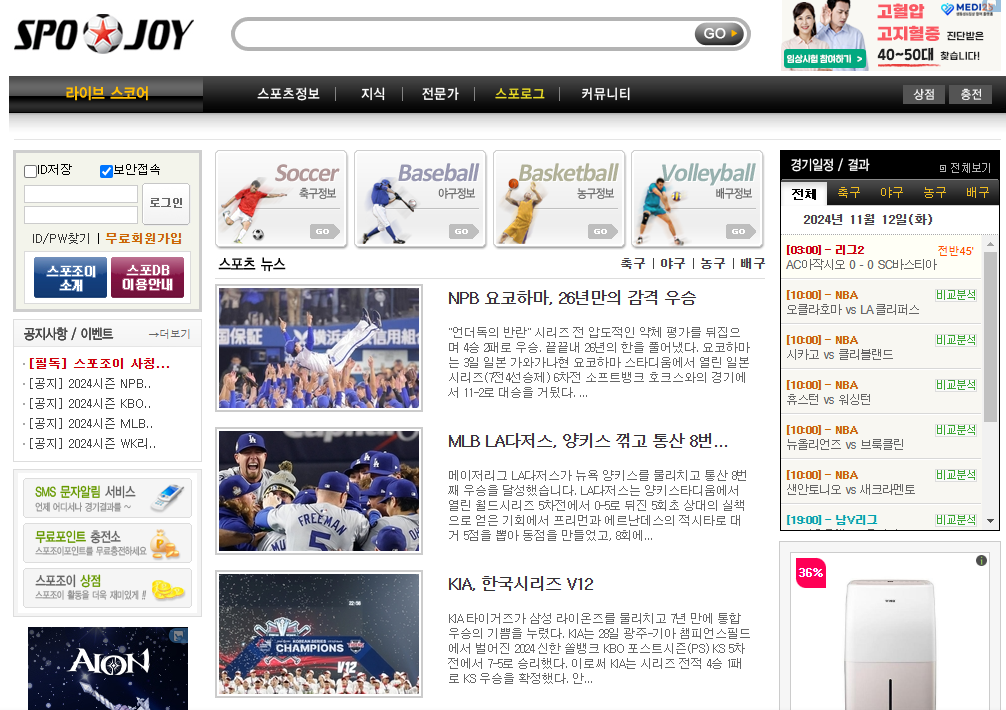 스포조이는 스포츠 정보 플랫폼으로, 다양한 스포츠의 최신 소식과 경기 결과를 실시간으로 제공합니다. 축구, 야구, 농구 등 다양한 스포츠의 정보가 한 곳에 모여 있어 언제 어디서나 원하는 정보를 쉽게 찾아볼 수 있습니다. 또한, 스포조이의 인터페이스는 사용자 친화적으로 구성되어 있어, 처음 방문하신 분들도 쉽게 이용할 수 있습니다.