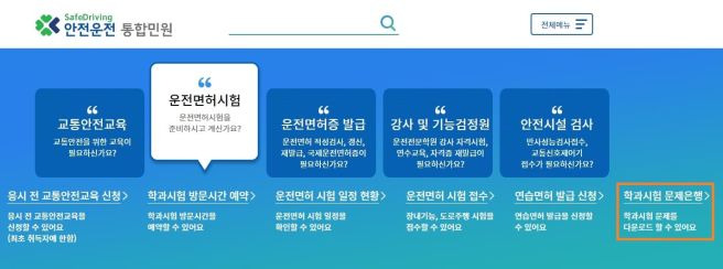 - 운전면허 필기시험 접수 메뉴를 선택합니다.