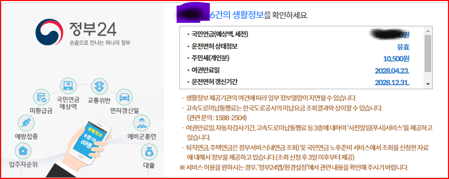 아니라 국민연금예상액, 주민세 등 다양한 생활정보를 확인할 수 있습니다.