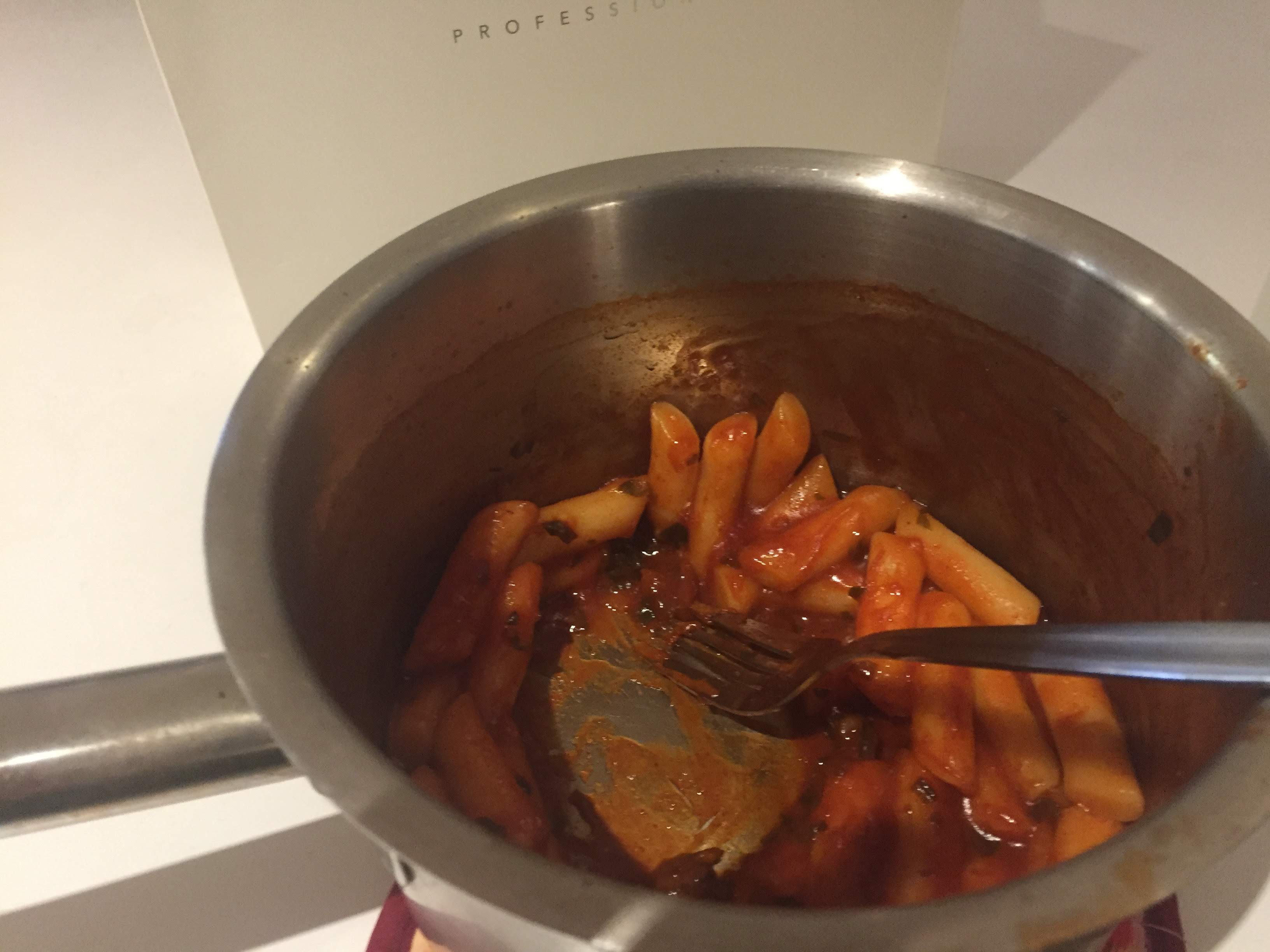 후라이팬에 그냥 구우니 밑에 달라붙는 것 같아서 앞 친구에게 오일을 빌려서 아주 조금 프라이팬에 넣으니 덜 타는 것 같았다.