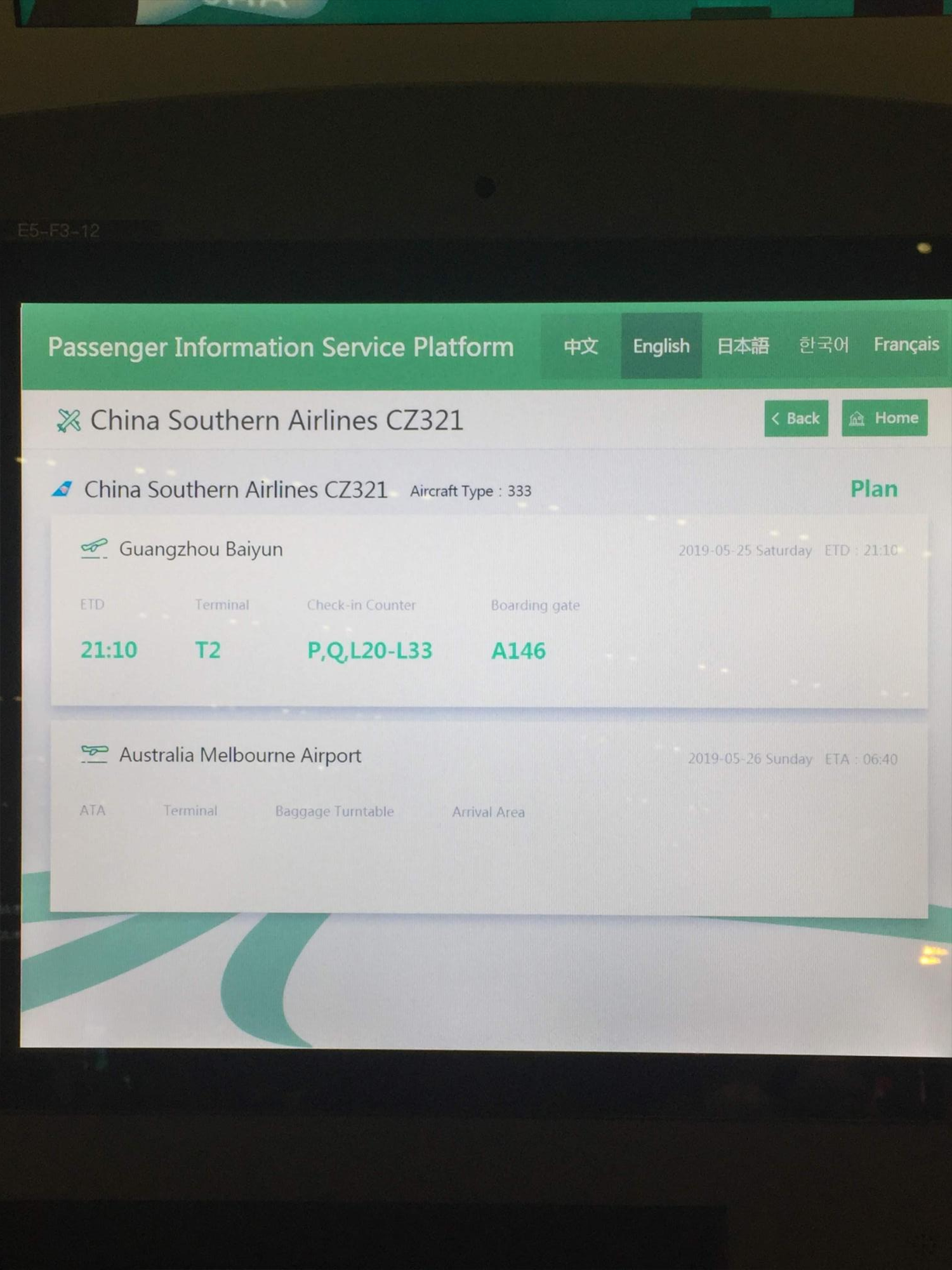광저우는 생각보다 서울에서 먼 거리에 위치해 있었다. 그래서 광저우로부터 멜버른 까지의 비행시간은 9시간 남짓 한 걸로 기억한다.