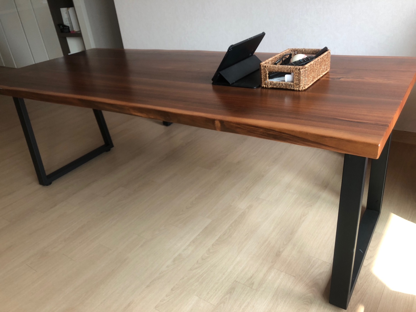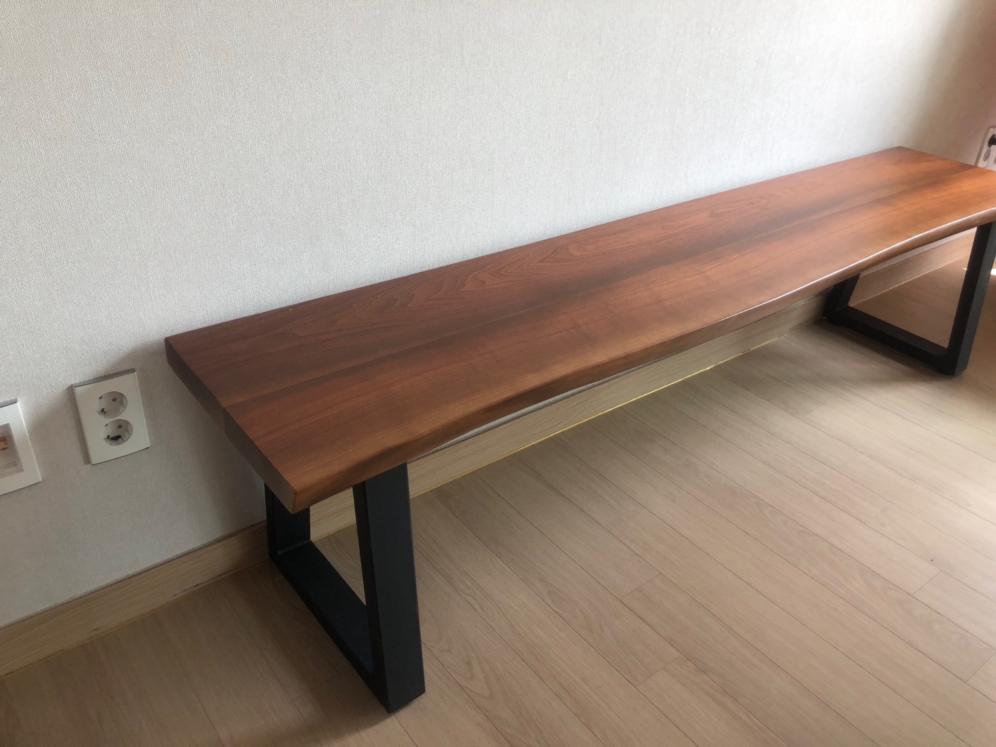 2년 동안 많이 구경했는데, 정말 맘에 드는 북미산 월넛의 경우 상판 가격만 300만원 정도 였던 것 같다. 예산을 고려했을 시 잘한 선택이었지만 배송비가 별도 였다는 점 그리고 통원목이 아니고 북매치도 아니 였다 점이 아쉬웠다.