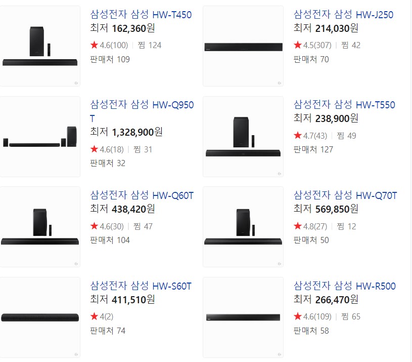 일단 대충 찾아보니 LG, 삼성, 야마하 사운드바로 브랜드가 좁혀졌다. 그 중에서 야마하는 일본 브랜드라서 OUT 시키고... LG TV 이니깐 가급적 LG 사운드바를 구입하고자 했으나 LG 사운드바는 중간 사양이 없었다. 반면에 삼성 사운드바는 사양이 LG에 비해선 많았다. 하지만 가장 중요한 가성비! 500만원대 TV에 10만원 짜리 사운드바는 아닌 것 같아서 예산을 조금 더 높였다. 한30만원 정도... 사운드바를 하나도 모르지만...