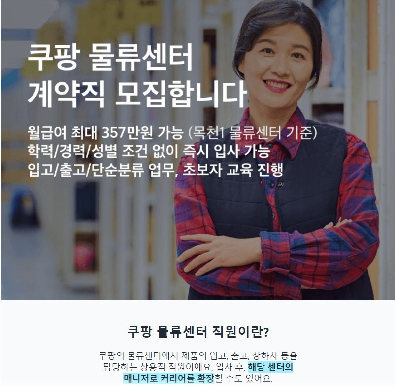 쿠팡이 내세우는 알바 장점?