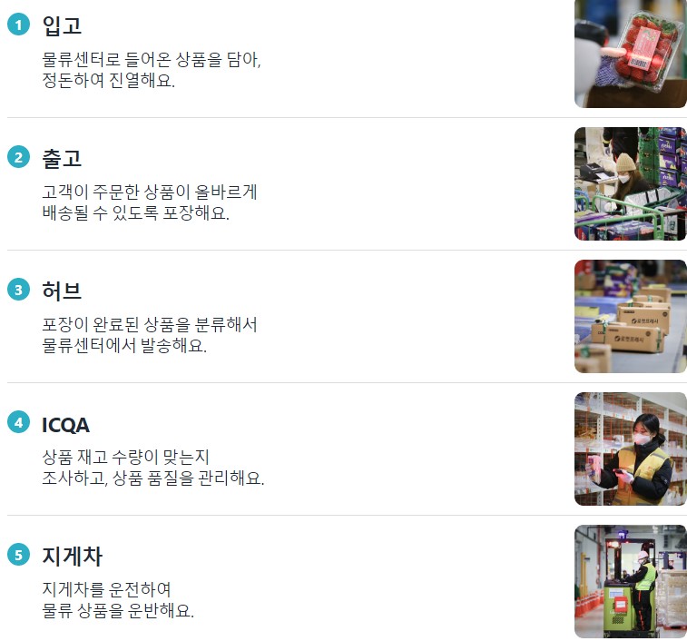 쿠팡물류센타 업무