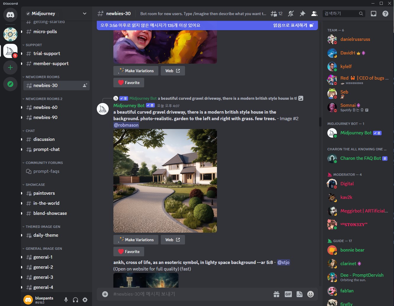 내가 느끼는 미드저니를 비유해 보자면, 노션+트위터+알파 인 것 같다. 처음에는 메시지가 하도 많아서 적응이 안되었다. 나는 누구? 어디에 있는건가? 느낌이...