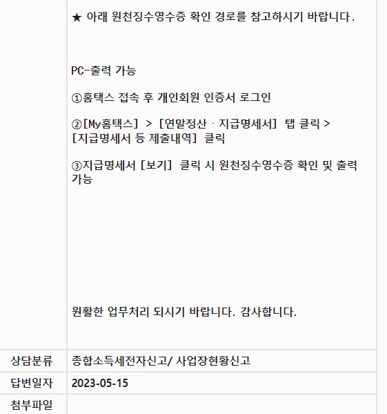 아시나요? 국세청 통화는 어렵지만 이메일로 문의시 답변을 나름 빠른 시간안에 받을 수 있다는 사실을... 그래서 질문 했습니다. 왜 에러가 나는지 모르겠다고... 그래도 상세한 답변을 줘서 거기서 힌트를 얻고 다시 진행했죠