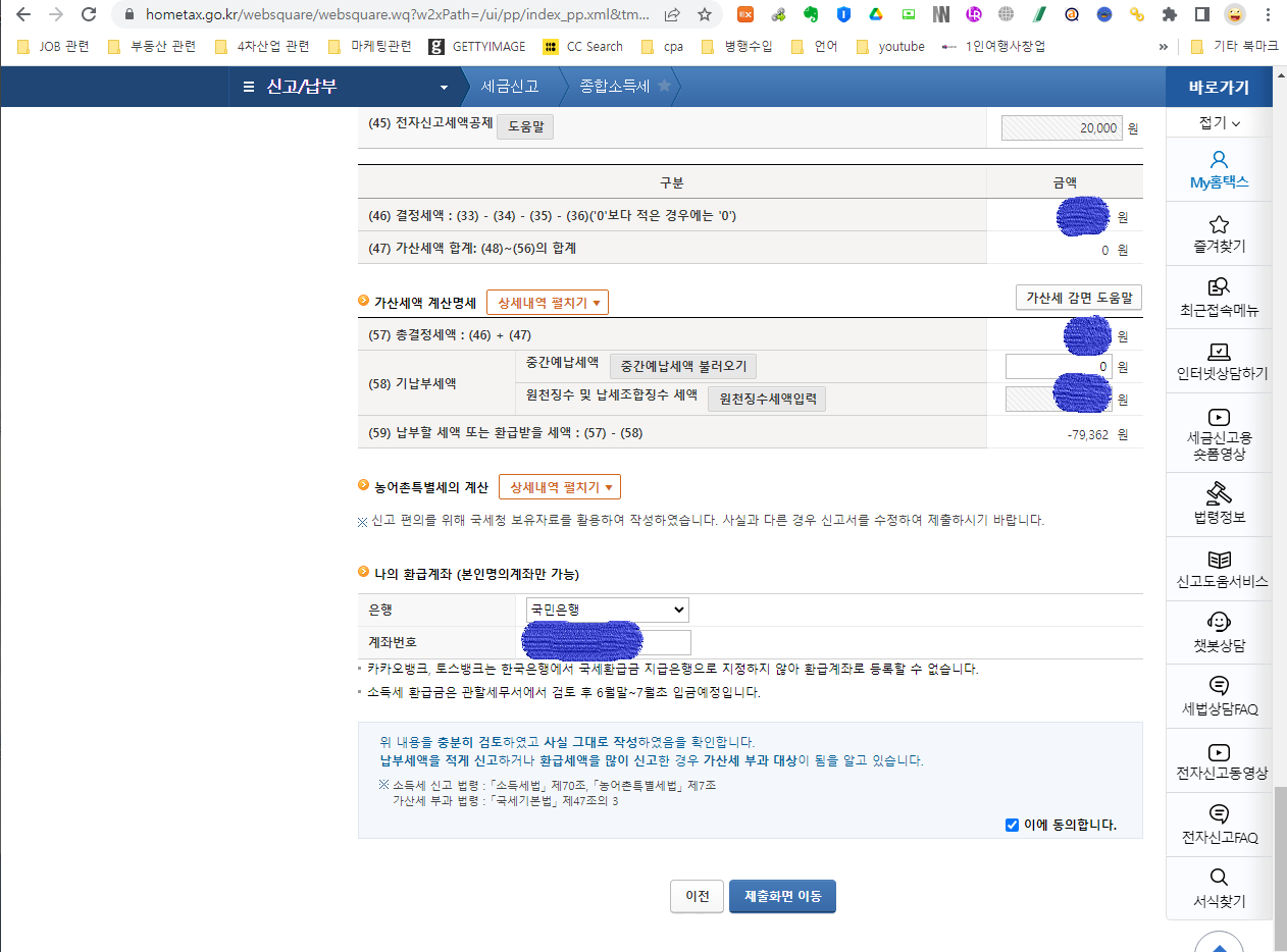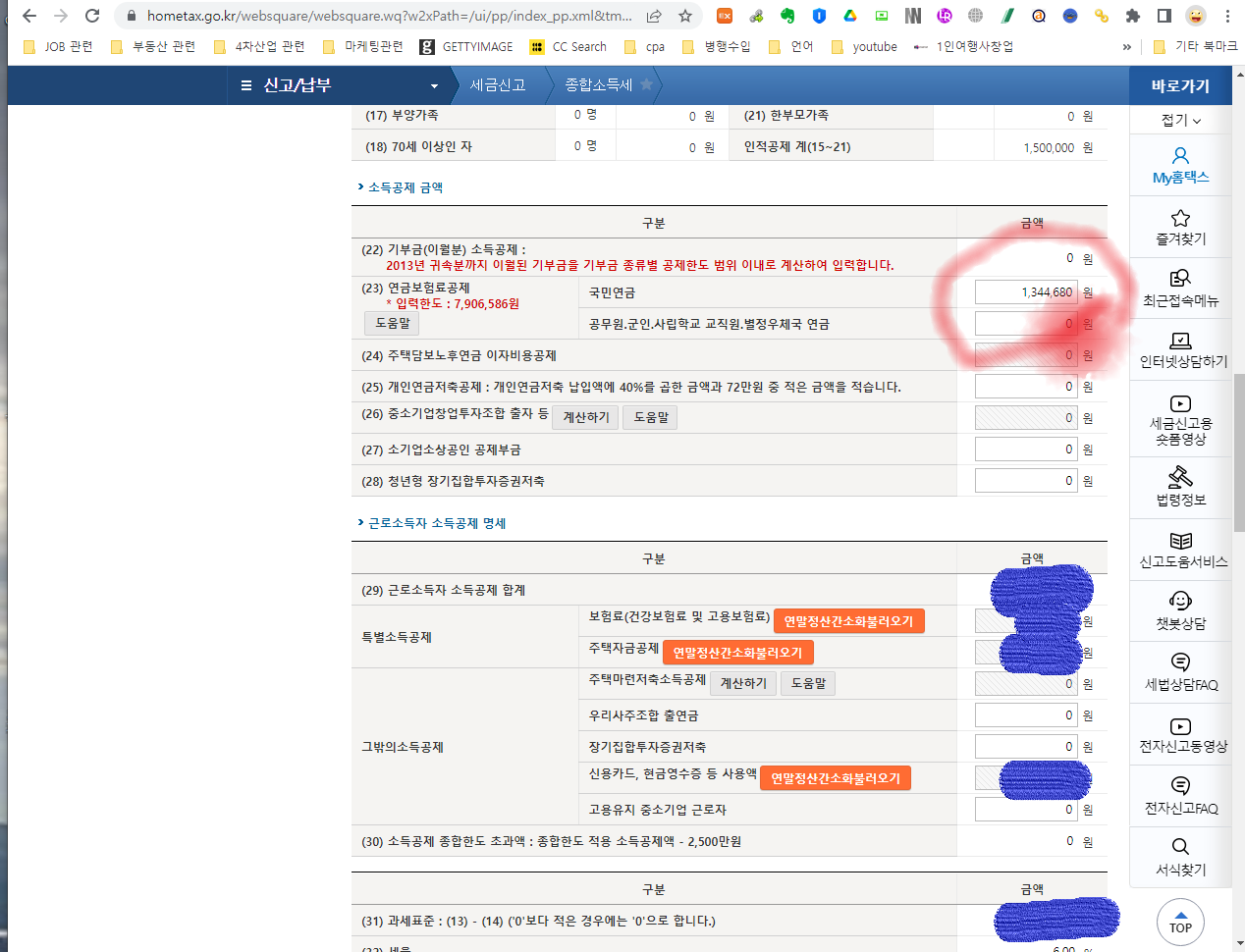 위의 동그라미 친 부분이 위에서 말한 부분입니다. 이 부분은 소득공제 해당되는 금액이기 때문에 미기입하면 본인에게 불리하겠죠? 그래서 처음에는 공란으로 해서 신청했다가 최종적으로 문서상 금액을 기재하고 신고했더니 깔끔하게 마무리 되었습니다.