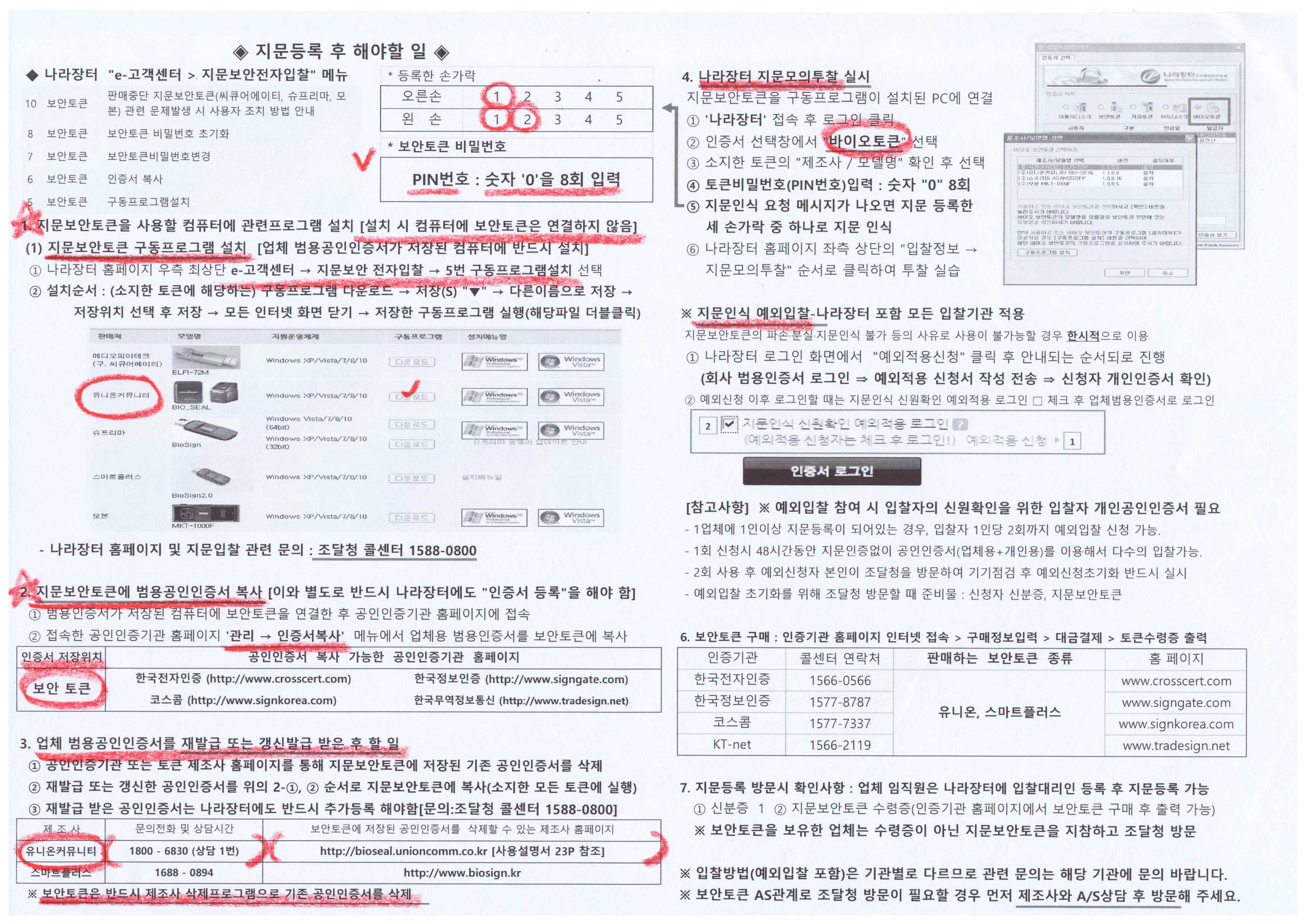 저같은 경우 지문보안토큰 구동프로그램 설치하는데 에러가 났고, 나라장터 접속 후 인증서 선택할 때 에러가 나서 시간이 좀 걸렸습니다.