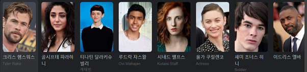 그리고 익스트랙션1에 이어서 사업파트너로 나오는 골시프테 파라하니…인도 출신 인줄 알았는데이란 출신의 배우라고 한다. 마지막으로 극중 ex 와이프로 나오는 올가 쿠릴렌코와 이드리스 엘바도 넷플릭스 시리즈물에서 봐서 낯익은 배우였다.