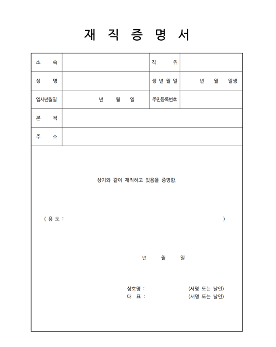 1. 재직증명서 양식