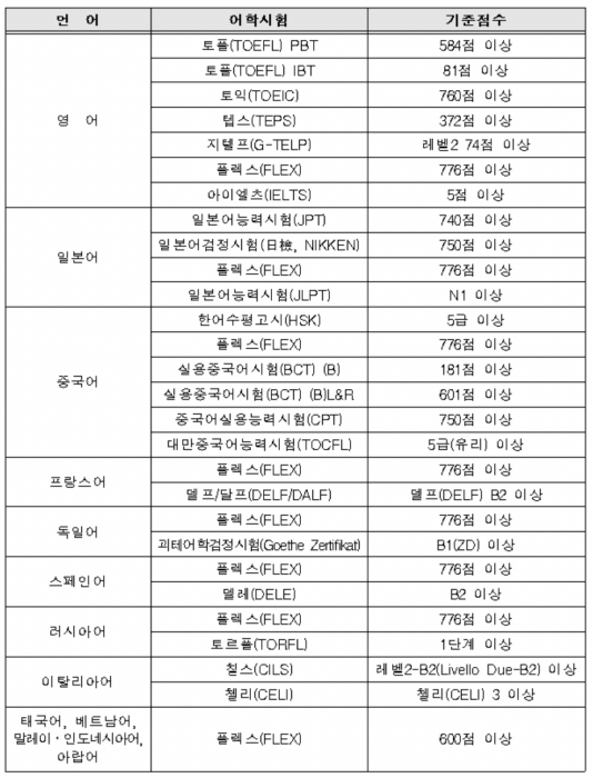 응시원서접수 마감일 기준으로 2년 이내에 시행된 시험에서 취득된 어학점수에 한합니다. 영어의 경우