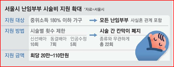 그러나 서울시의 경우 맞벌이 부부가 난임시술을 받는 데 드는 경제적 부담을 줄이고자 7월부터 소득을