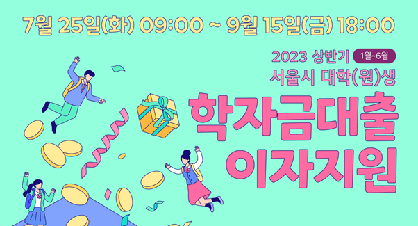 지원대상 : 서울에 거주하면서 한국장학재단에서 학자금대출을 받은 대학 또는 대학원 재학생