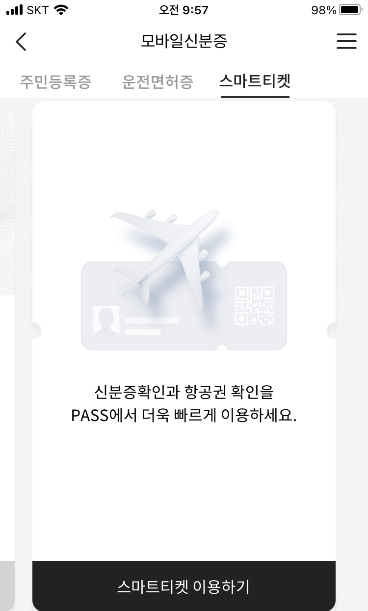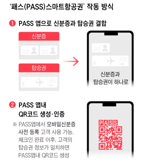 모바일 운전면허증 및 주민등록증과 국내선 탑승권을 결합한 형태로 패스 앱 안에서 QR코드를 생성해서 비행기를