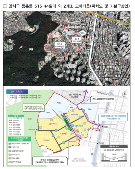 서울특별시는 7.18(화) 강서 2곳, 중랑 4곳 등 총 6곳의 '모아타운 관리계획(안)' 심의를 통과시켰다고