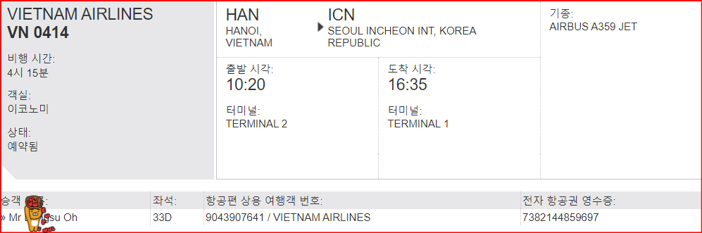 네이버 통해서 항공권 구매 하는 것보다 내가 가진 신용카드로 베트남항공에서 직접 결재하는 게 더 싸다.