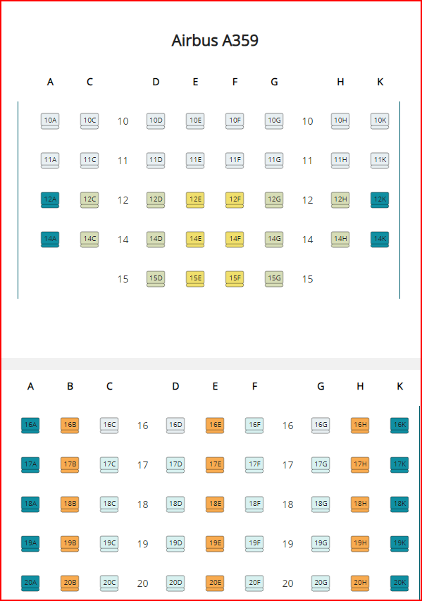 하지만 베트남항공 이코노미석의 경우 33열부터는 비상구 좌석을 제외하고 모두 추가비용이 없고 그 앞으로는 좌석별로 추가비용이 있습니다.
