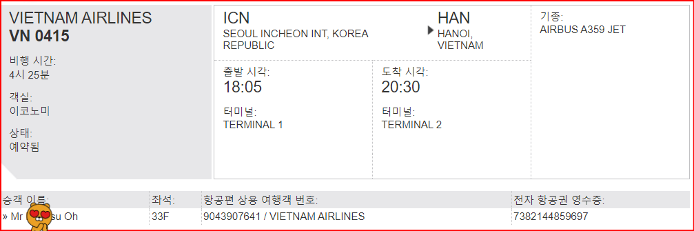 딱 1년 만에 다시 하노이 방문 예정입니다. 이번에는 좀 수준 있게 베트남 항공 타고 갈 예정입니다. 작년에는 처음 들어본 뱀부 항공 타고 갔었는데, 뱀부항공 보다 더 좋은 가격으로 구입한 베트남항공 사전 좌석지정 방법을 알려 드리겠습니다.