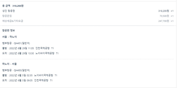4. 2022년 8월 인천-하노이 뱀부항공 결재금액