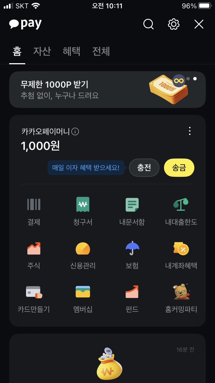 카카오페이 화면에서 돋보기를 누르면 인기 검색어가 뜨는데 거기서 환전을 클릭하면 화면이 이동합니다. 자주 사용하는 기능인데 왜 홈 화면에 아이콘이 없을까요?