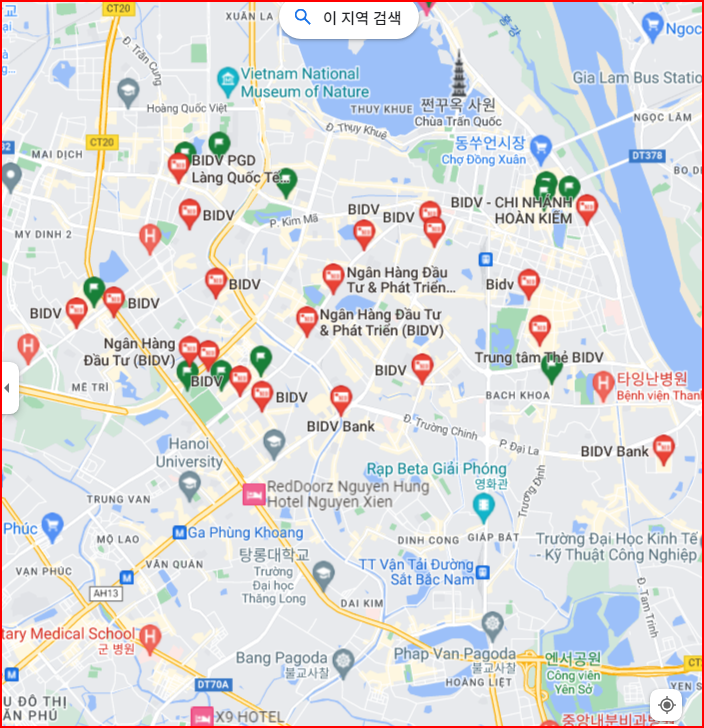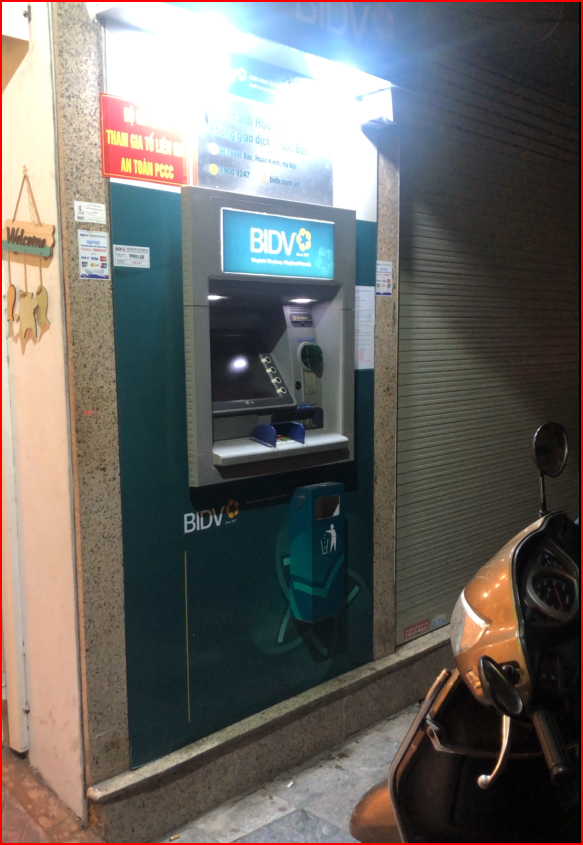 베트남에는 한국 보다 더 다양한 은행들이 많습니다. 큰 길가에서는 지나가다가 많이 봤던 BIDV 가 닌빈 다녀온 후 맥주거리 근처에서 하차 했는데, 그 근처에는 BIDV ATM 이 없어서 20분 넘게 찾아 헤맸습니다. 맥주거리 근처 좁은 도로에 과연 BIDV ATM 이 있을까 했는데 아래 사진 처럼 부스가 없는 아주 작은 공간에 ATM 설치 되어 있었습니다.