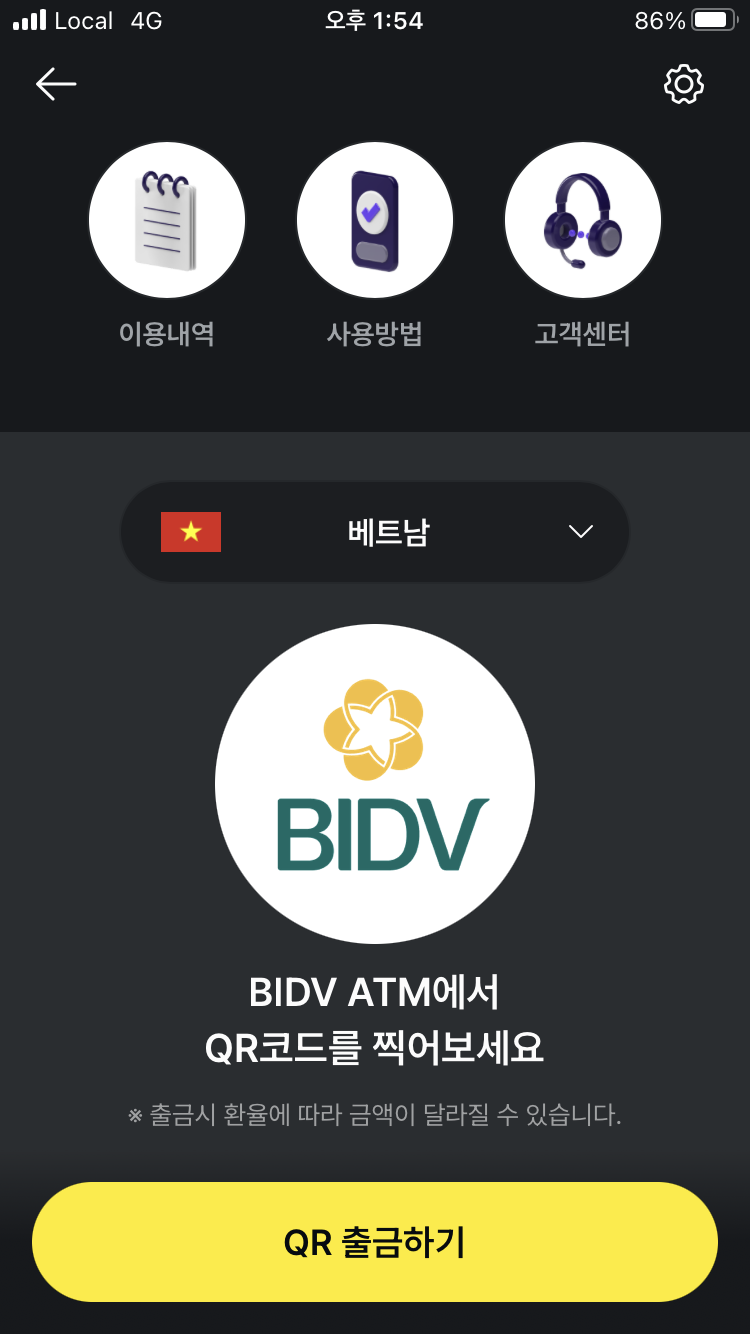 카카오페이의 경우 베트남에서는 BIDV 은행 ATM 에서 출금이 가능했습니다.