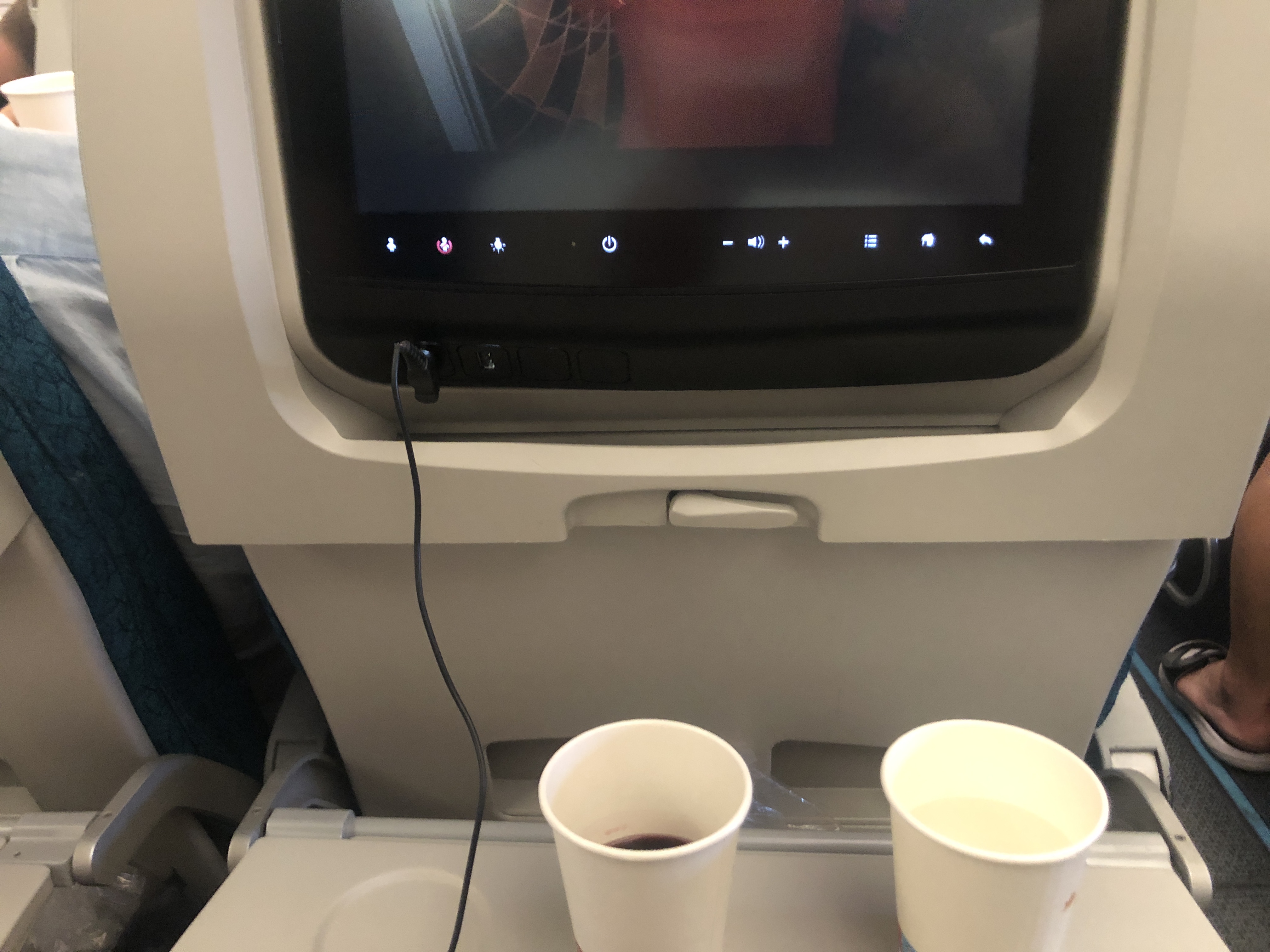 기본적으로 허리쿠션과 담요, 헤드셋이 제공되었고, 출발 이후 좀 지나자 헤드셋 커버를 제공해 줬습니다. 하지만 서울 올 때는 헤드셋을 한참 후에 제공해 줬으니 참고하세요.