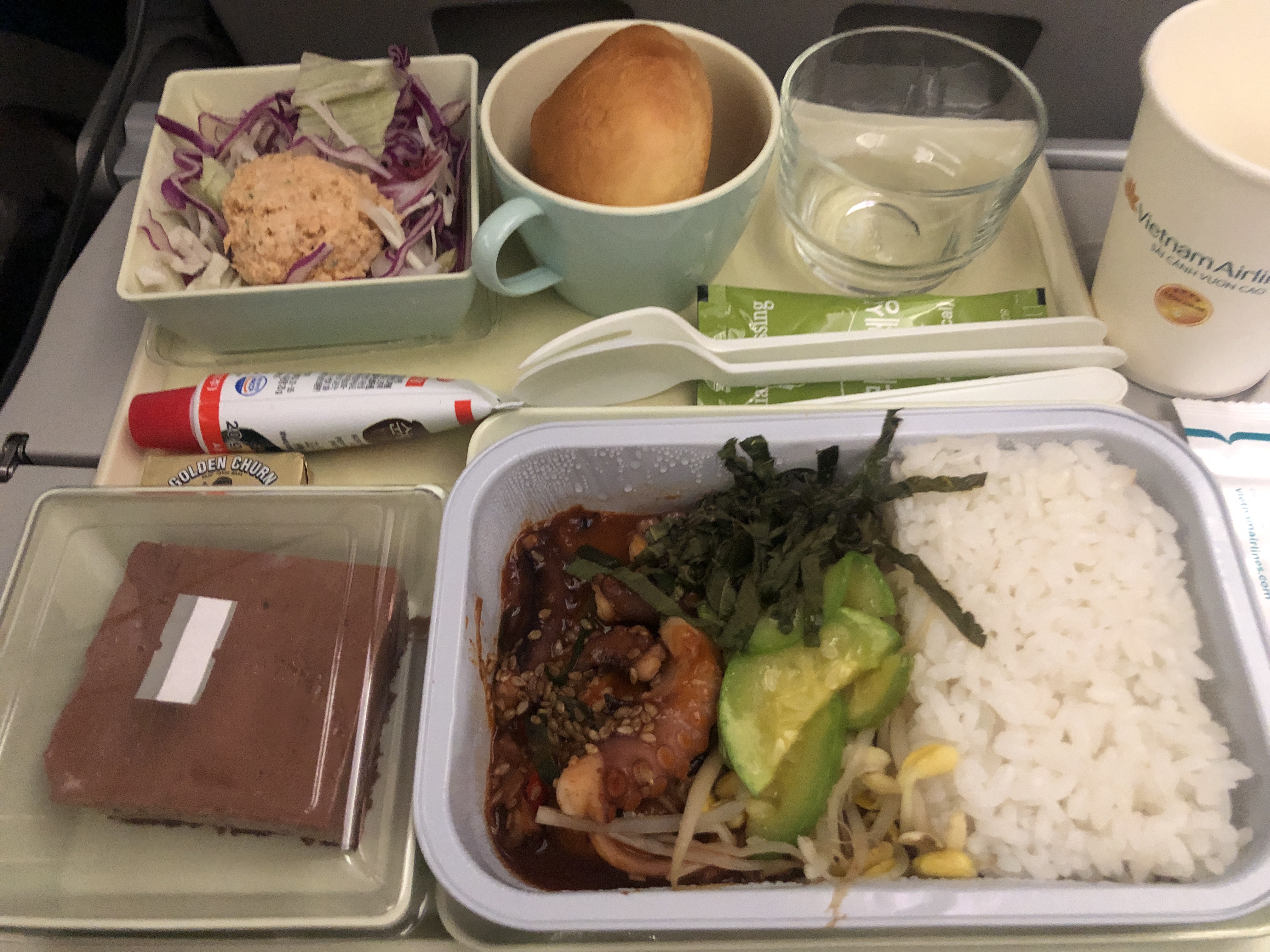 인천에서 6시에 출발하는 비행기라서 배가 고팠는데, 다른 사람들이 기내식 별로라는 얘기를 많이 했는데 저는 입맛이 까다로운 편이 아니라서 맛있게 싹 비웠습니다. 제가 주문한 식사는 낙지볶음?