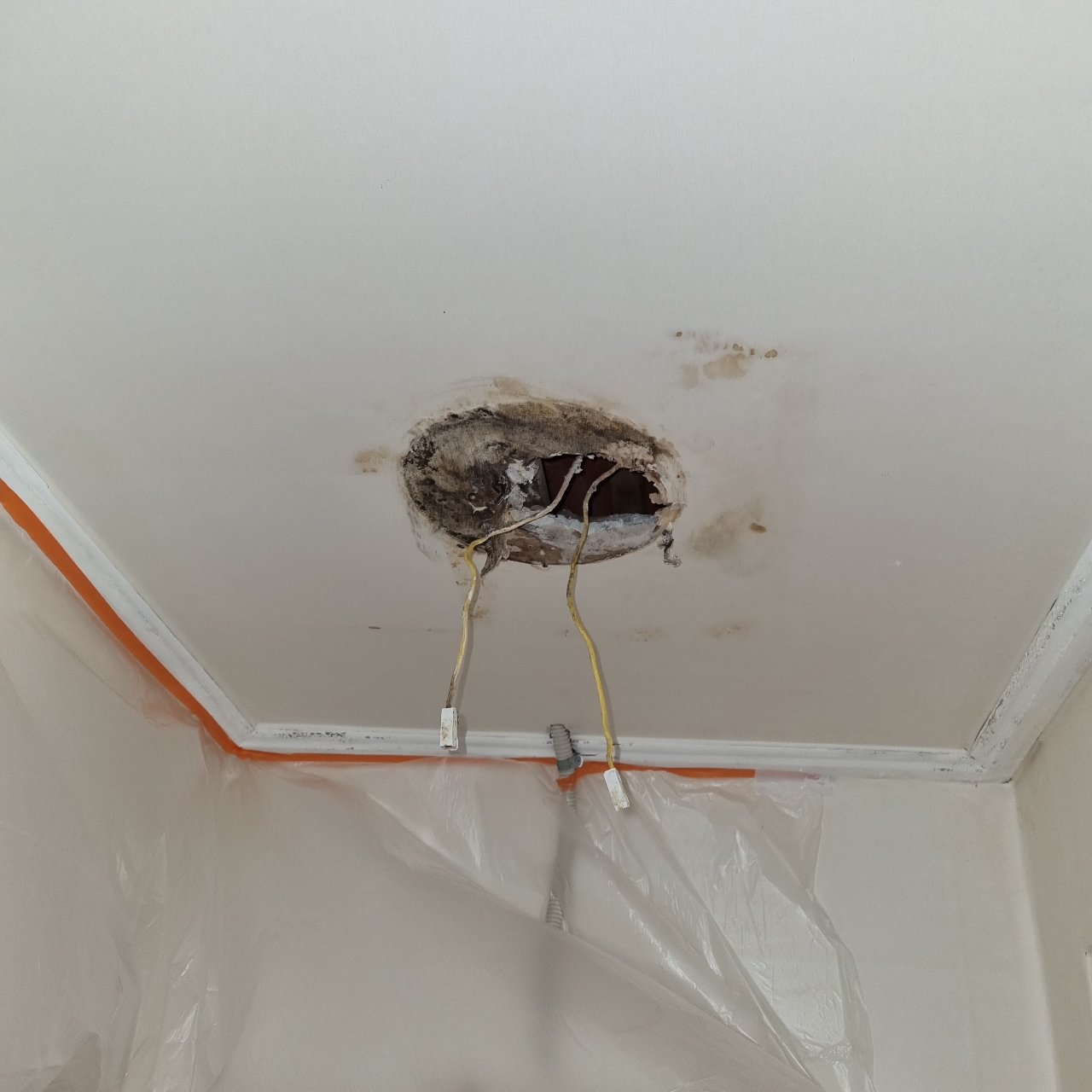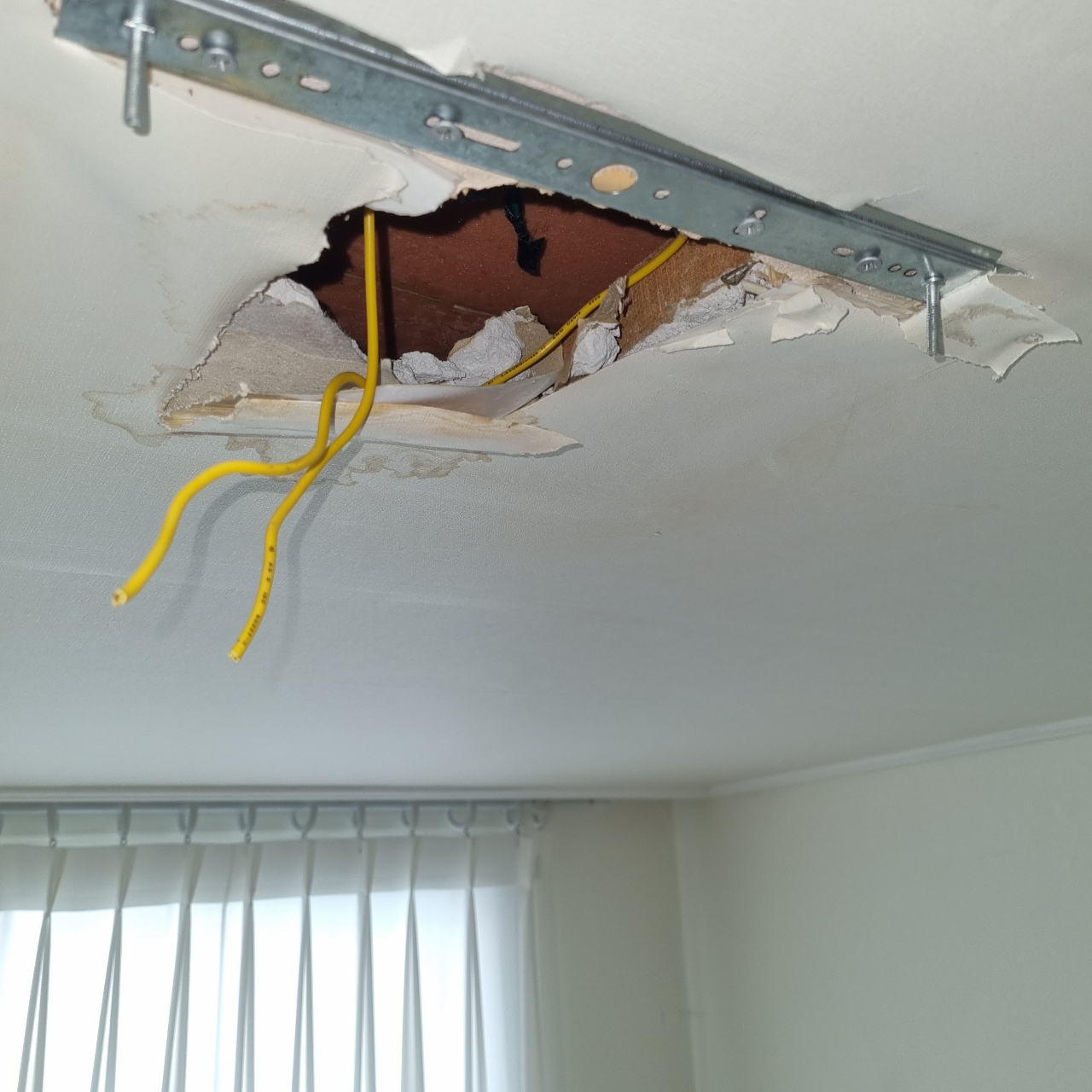먼저, 누수의 원인이 되는 부분부터 공사를 시작하여 누수 원인을 완전히 제거한 후, 아래 층에서 발생한 피해를 복구하는 작업을 진행하였습니다. 현관 천장과 방 천장을 모두 철거하고, 공사 및 도배 작업을 수행하였습니다.