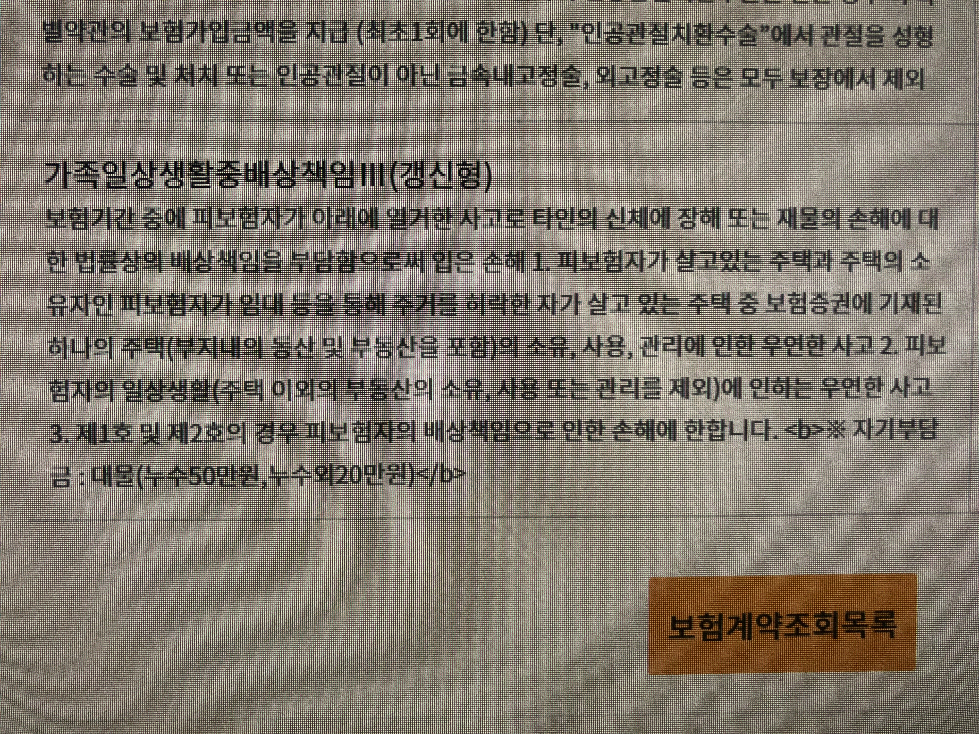 또한, 일상배상책임보험으로 처리가 가능하다는 사실을 확인한 후, 공사비가 300만원을 넘어서 처리 과정에 삼성화재보험에 알렸습니다. 하지만 공사비가 300만원 이상이므로 즉시 처리되지 않고, 공사 현장 실사 후 처리 가능하다고 합니다.