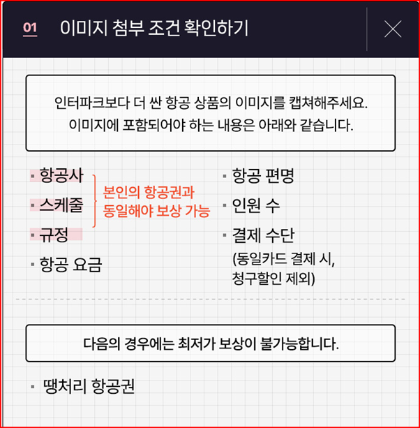 인터파크투어에서 해외 항공권 발권 완료한 고객을 대상으로 구입한 항공권이 최저가가 아닐시 그 차액을 100% 보상 해준다고 합니다. 그렇다면 싼 항공료를 찾기위해 밤, 낮으로 검색할 필요도 없고, 시간도 많이 절약 할 수 있을 것 같네요
