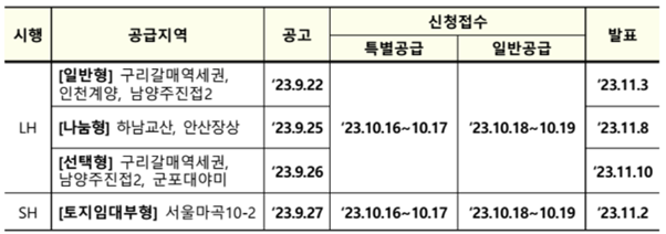 | - 하남교산(LH) 452호 - 안산장상(LH) 440호 - 마곡 10-2(SH) 260호 |