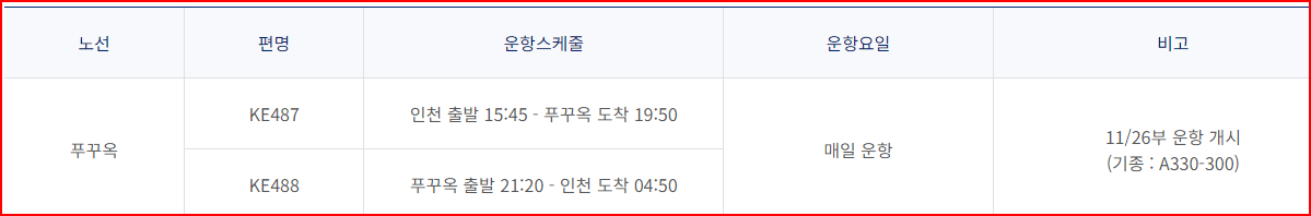 2023년 11월 26일(일) 부터 매일 운항 예정
