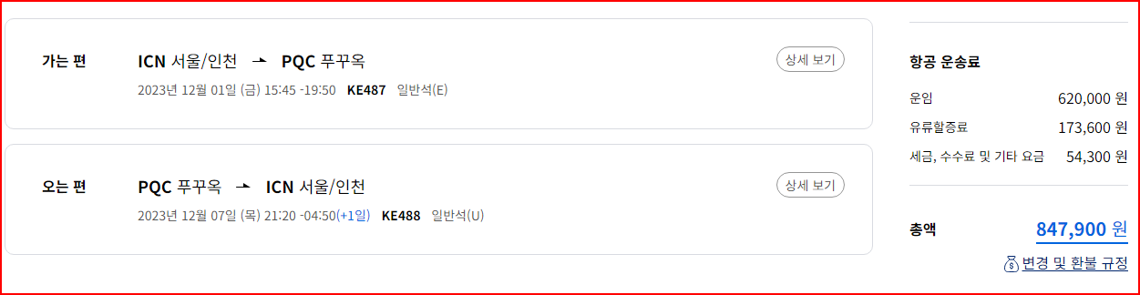 12월1일 출발, 7일 귀국으로 검색시 항공료 입니다. 할인 받아서 갔다 오는 게 좋을 것 같네요