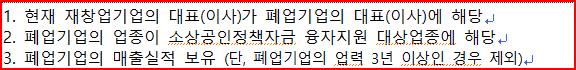 - 3개월 이상 휴업 후 영업을 재개하거나 업종전환한 소상공인