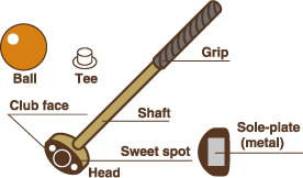 클럽의 무게는 600g 미만, 길이는 860mm 미만이어야 합니다. 나무헤드의 부피는 클럽 전체에 비례하여 82% 이상이어야 한다. 클럽 페이스와 솔(클럽 헤드의 바닥면) 사이의 각도가 90°보다 큽니다. 공의 직경은 6cm이고 무게는 80-95g입니다.