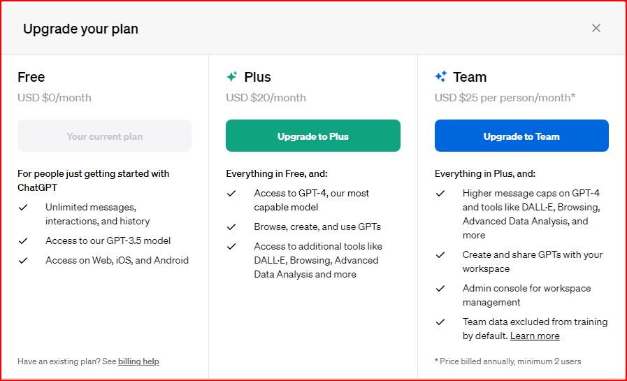 ChatGPT는 무료 및 유료 버전으로 제공됩니다. 무료 버전은 제한된 기능만 사용할 수 있습니다. 유료 버전은 모든 기능을 사용할 수 있으며, 더 나은 성능을 제공합니다.